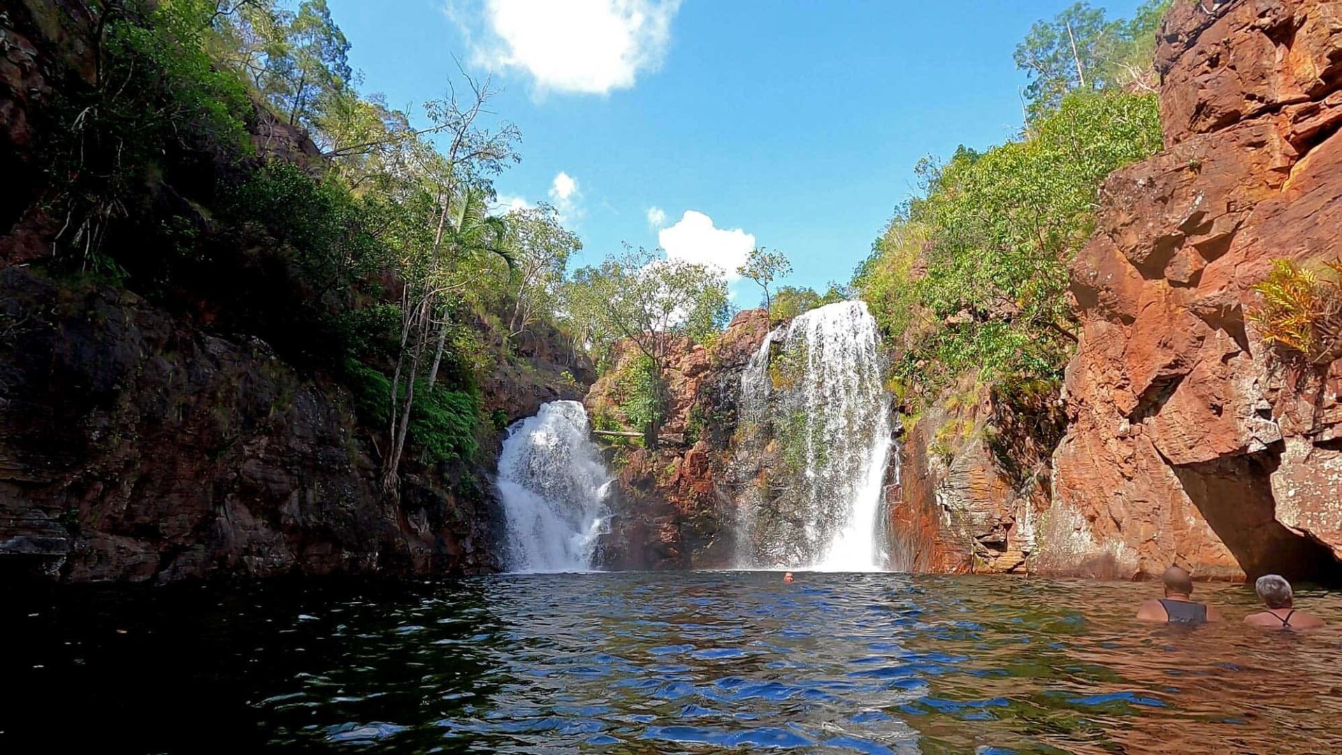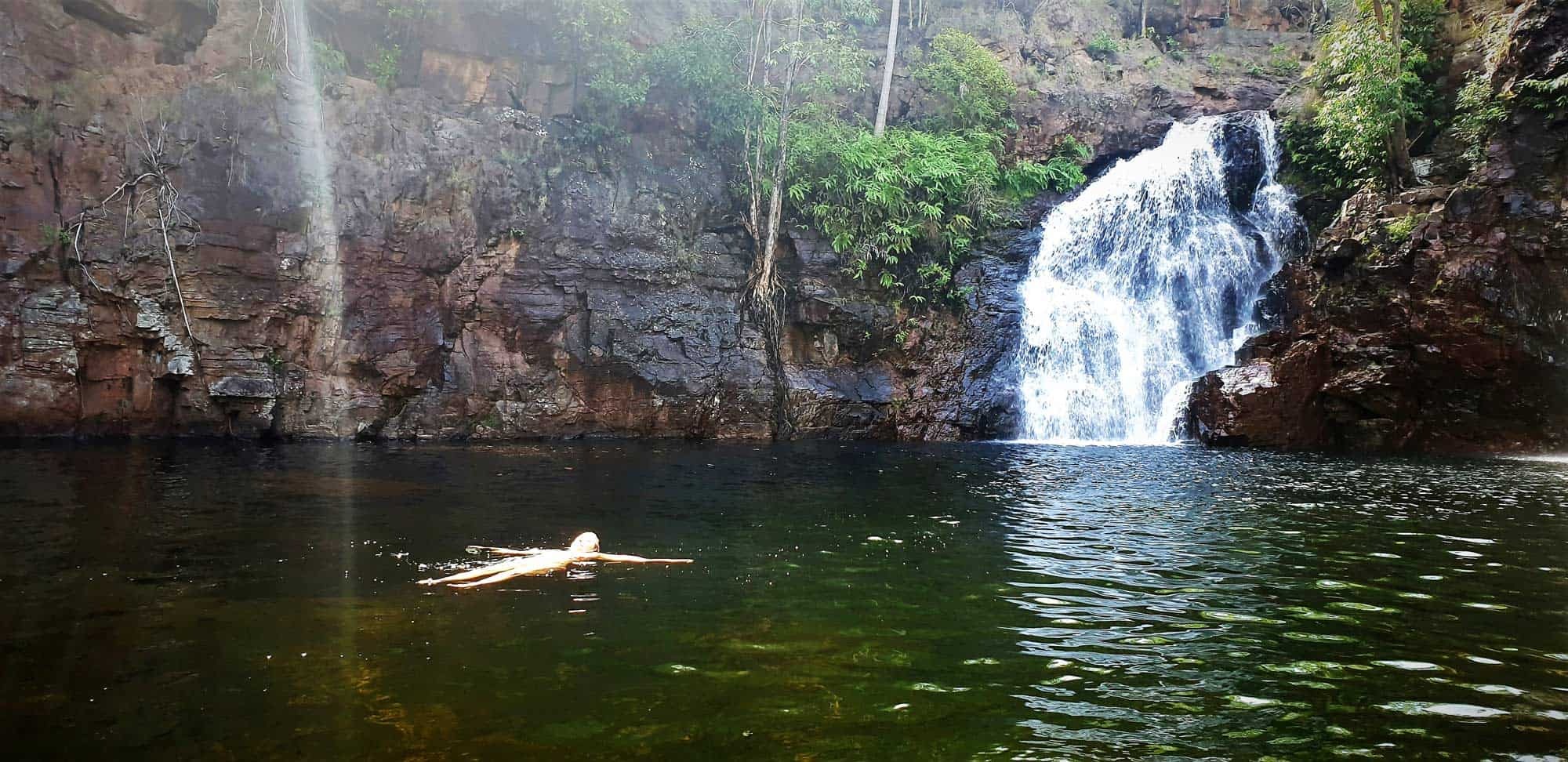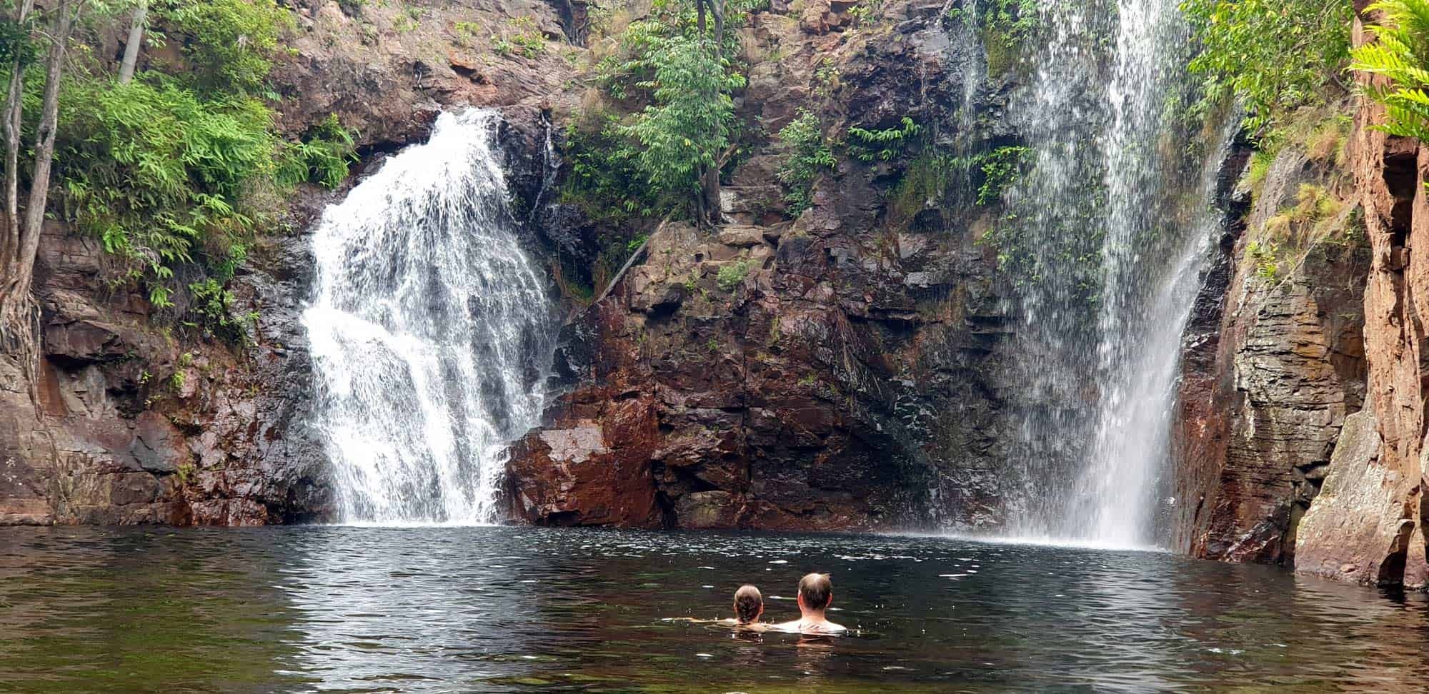 FLORENCE FALLS – Open all year with only minor closures after major rainfall events this is a cornerstone of the Litchfield swim scene. At around 16 metres in height it is a quaint, personal waterfall. The swim area is about 40 metres across to the waterfall itself.