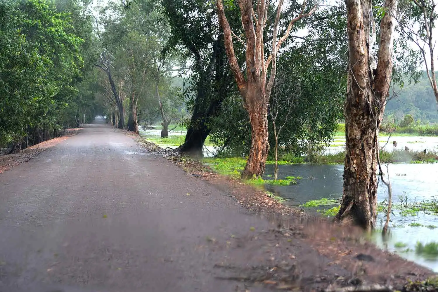 The dam is located approximately 68 km to the South East of Darwin. You first drive south on the Stuart Highway before turning off on the Arnhem Highway towards Kakadu. You will drive past the township of Humpty Doo and soon arrive at the turnoff to Fogg Dam (Anzac Parade). You cant miss the turnoff as it is right after the Radio Transmitting Towers and clearly marked. 5 km down Anzac Parade you will turn into Fogg Dam Road. The entire journey is on sealed road and accessible all year round.